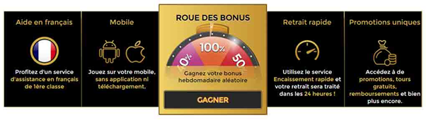 Bonus avec Code (ex. : FREE10) Oui Tours gratuits ou bonus plus généreux Nécessite un code valide